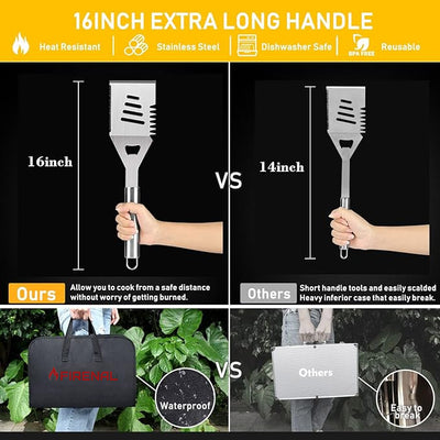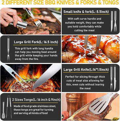 34Pcs Grill Accessories Grilling Gifts for Men, 16 Inches Heavy Duty BBQ Accessories, Stainless Steel Grill Tools with Thermometer, Grill Mats for Backyard, BBQ Set for Men Women